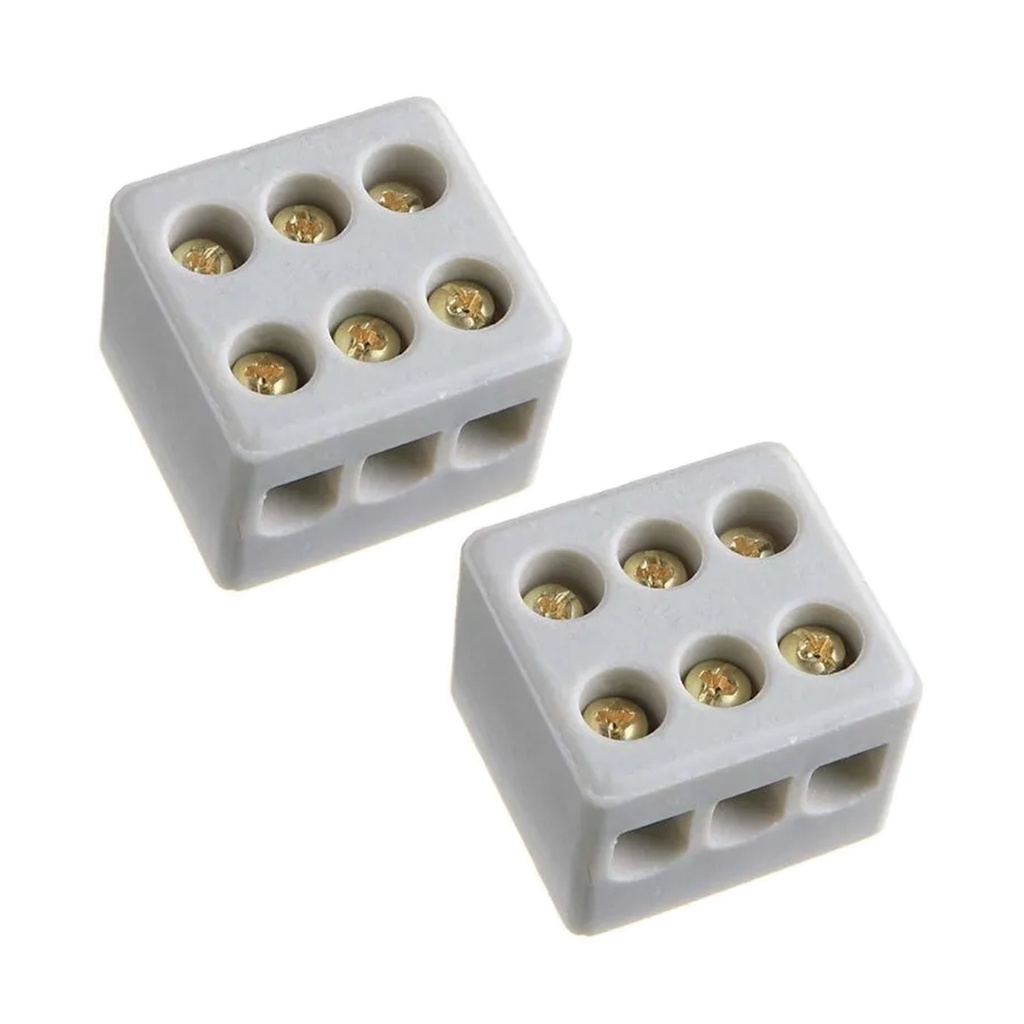 Conector Porcelana Emenda Fio Chuveiro 3 Polos 16mm Foxlux
