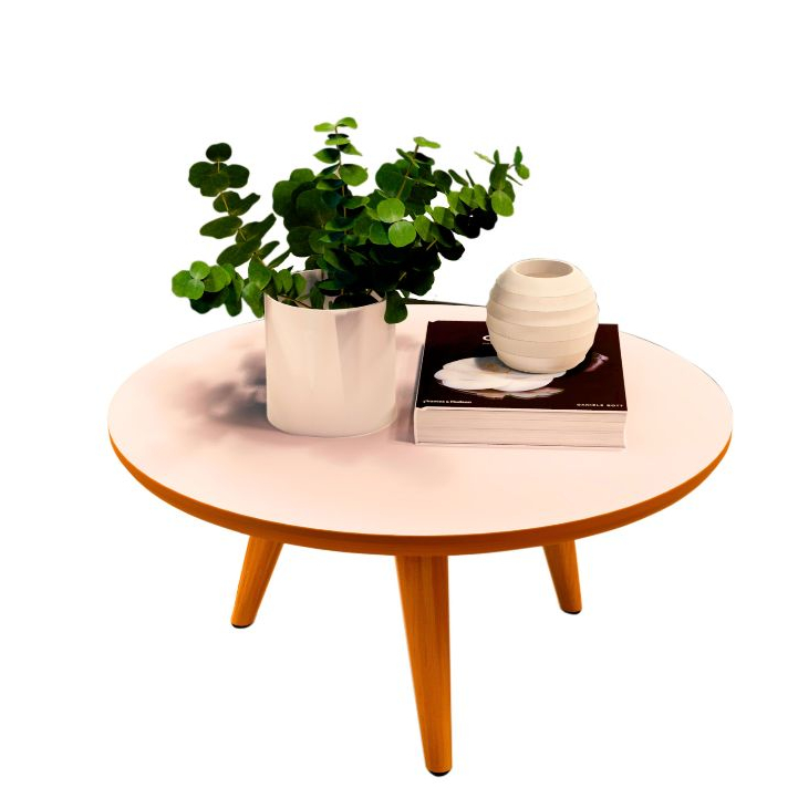 Mesa Lateral/Apoio/Centro Redonda com Pés de Madeira MDF - Retro Canto Sofá Porta Objetos Decoração