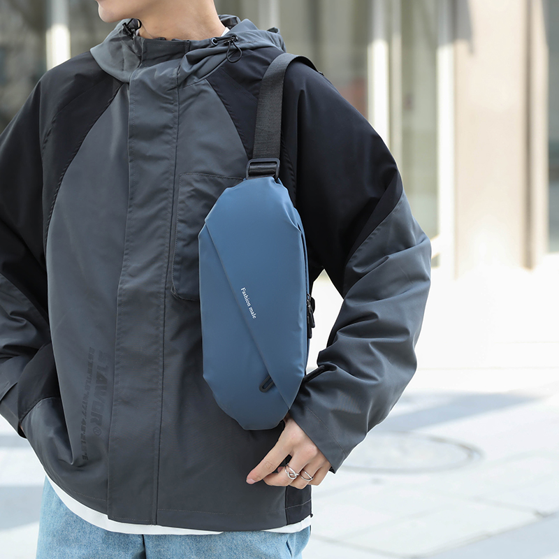 1PCS Fashion Leisure Material Têxtil Oxford Cor Sólida Com Alças De Ombro Ajustáveis Grande Capacidade Abertura Diagonal Do Zíper E Fechamento Peito Homem Para Esportes