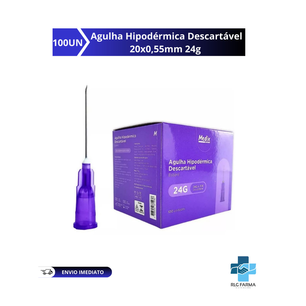 Agulha Hipodérmica Descartável 20x0,55mm 24g (Roxa) Caixa C/100 - Medix