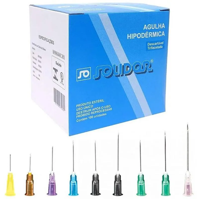 AGULHA HIPODéRMICA DESCARTAVEL CAIXA COM 100 UNIDADES SOLIDOR 20 X 5,5