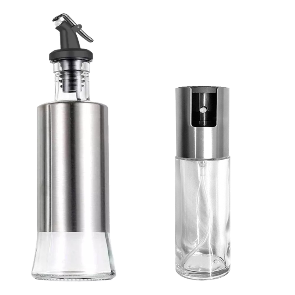 KIT DE Galheteiro E Borrifador Spray Pulverizador PARA Vinagre ou Azeite Aço Inox Vidro Cozinha Multiuso