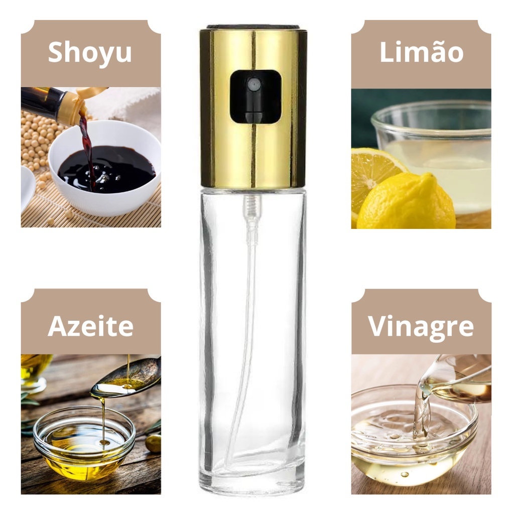 Kit com 4 Spray Pulverizador Borrifador Azeite Vinagre Óleo Vinho Shoyo Óleo de coco Galheteiro em Vidro