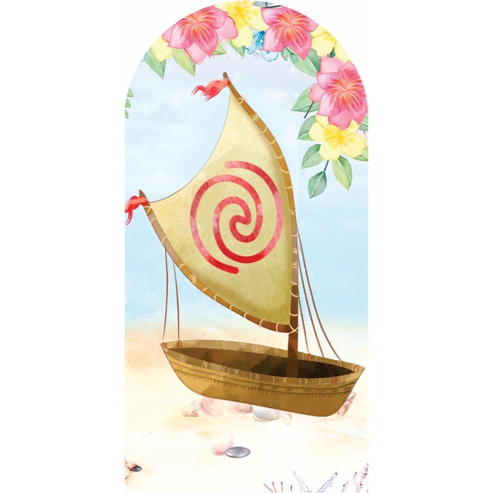 PAINEL DE FESTA TEMA MOANA ROMANO BICHINHOS - PORQUINHO MOANA - GALO MOANA - BARCO MOANA NA MEDIDA DE 2,00M DE ALTURA X 1,00M DE LARGURA EM TECIDO SUBLIMADO