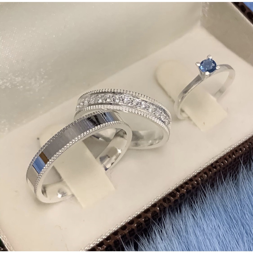 Aliança De Namoro em Prata 950 Com 15 Pedras Azul + Anel Solitário