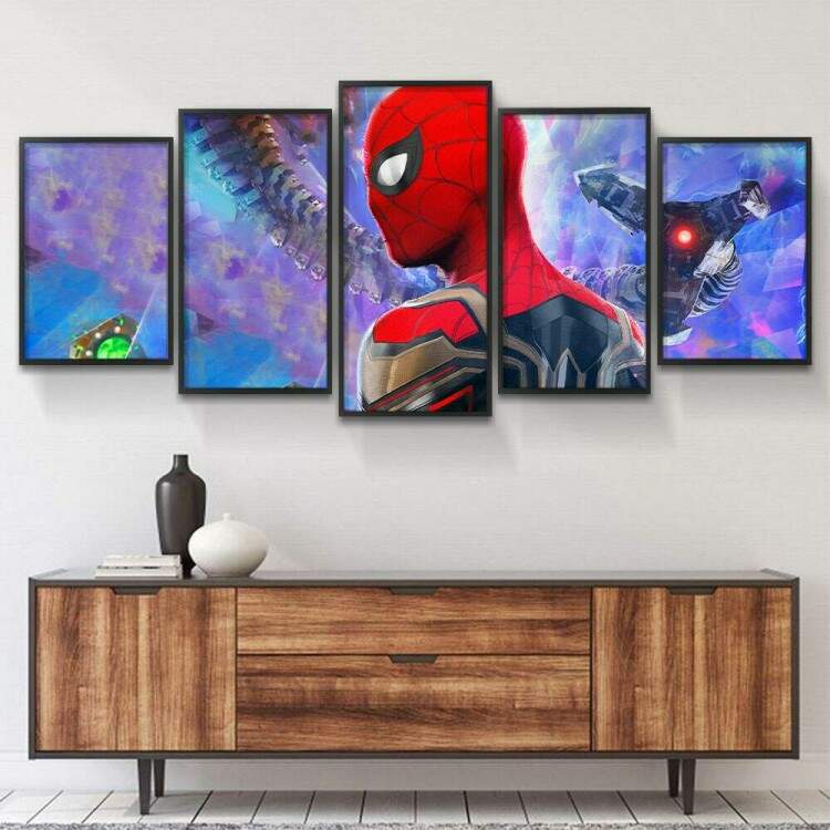 Kit 5 Quadros Decorativos Mosaico Homem Aranha 3