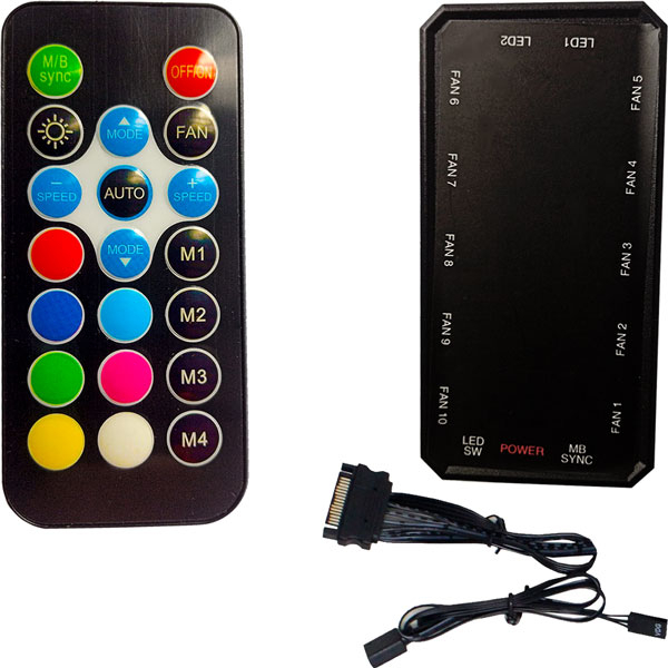 Controladora Para Cooler Fans RGB 6 Pinos 12v Suporta até 10 Fans ARGB + Controle Remoto + Cabos