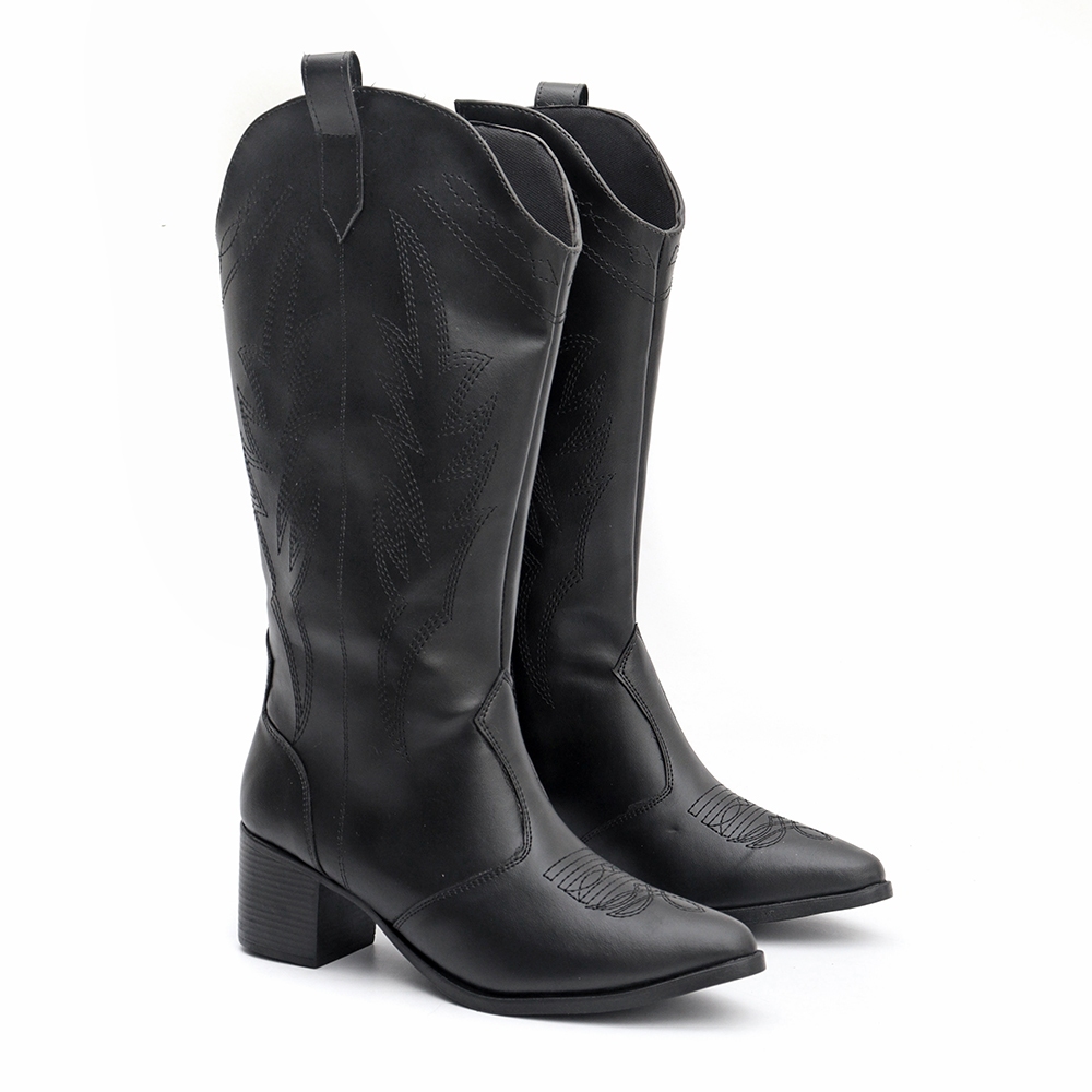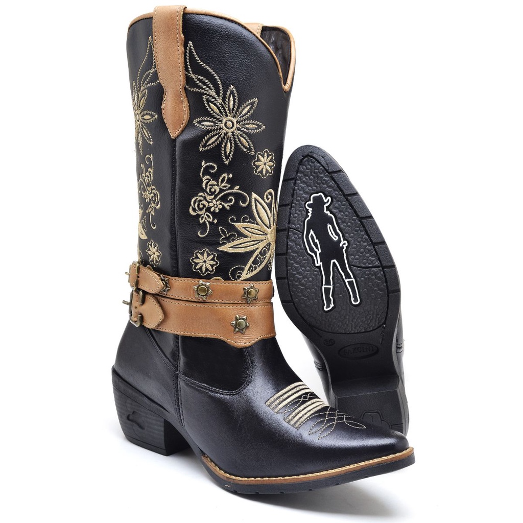 Bota Texana Country Feminina Bico Fino Cano Longo Bordado