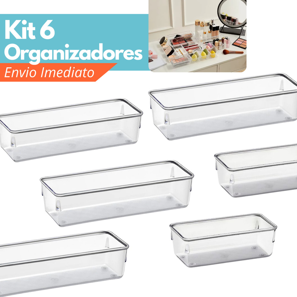 Kit 6 Organizadores Acrílico Médio Multiuso Modular Gavetas Mesas Geladeira Pote de Acrílico