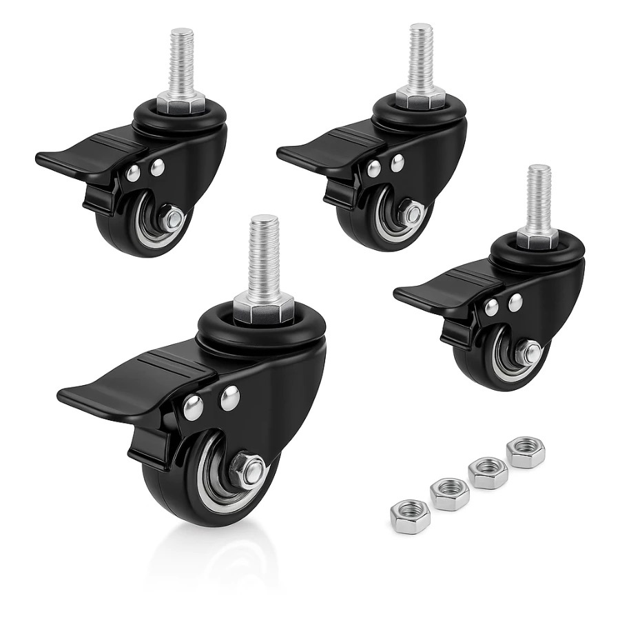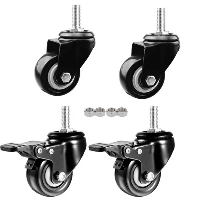Kit 2/4/8 Rodizio Rodinhas para Moveis Giratorias Borracha Com Espiga Parafuso Freio Trava Peso200kg