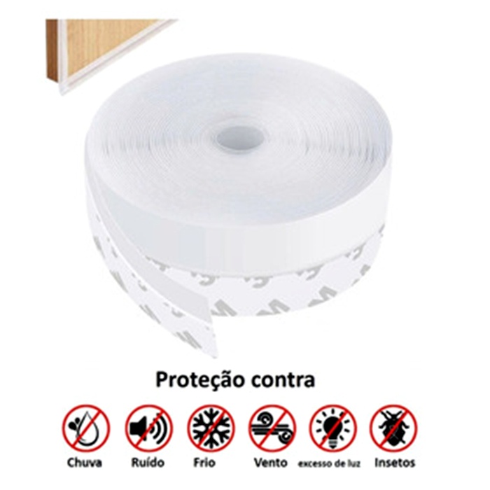 Veda Fresta Borracha Vedação Adesiva Para Porta Janela Contra Ventos Poeira Insetos - 15 Metros