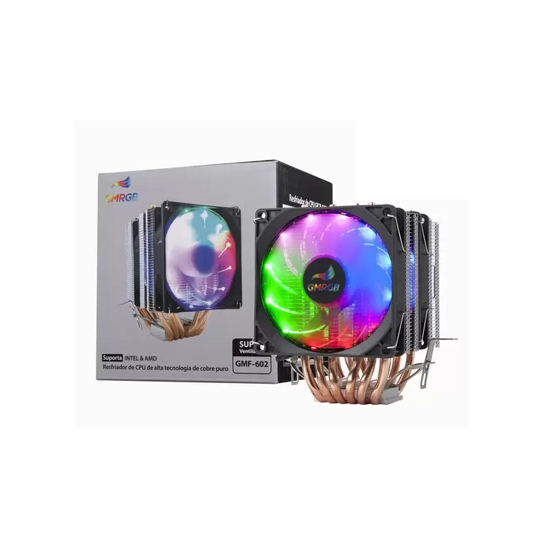 GMRGB GMF-602 Air Cooler Processador Duplo Pc Cpu ARgb Intel Amd Universal com pasta térmica