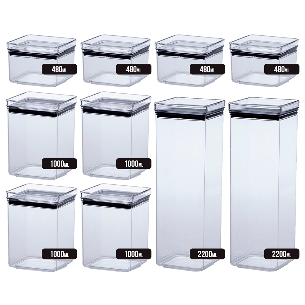 Kit 10 Potes pote Herméticos Acrílico Empilháveis Quadrado Para Alimentos Resistente Cozinha Dispensa. BC-83/BC-84/BC-85