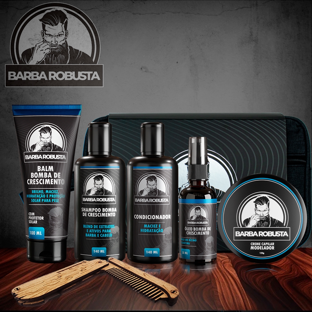 kit Barba Robusta Shampoo, Condicionador, Balm, Óleo, Cera, Pente