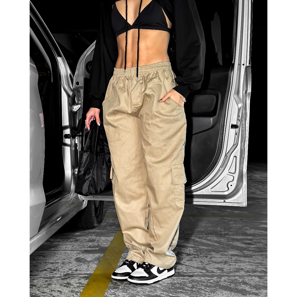 KIT 2 Calça Cargo Unissex Masculina Feminina Promoção Larga Preta Bege Cáqui Sarja Moda Skate
