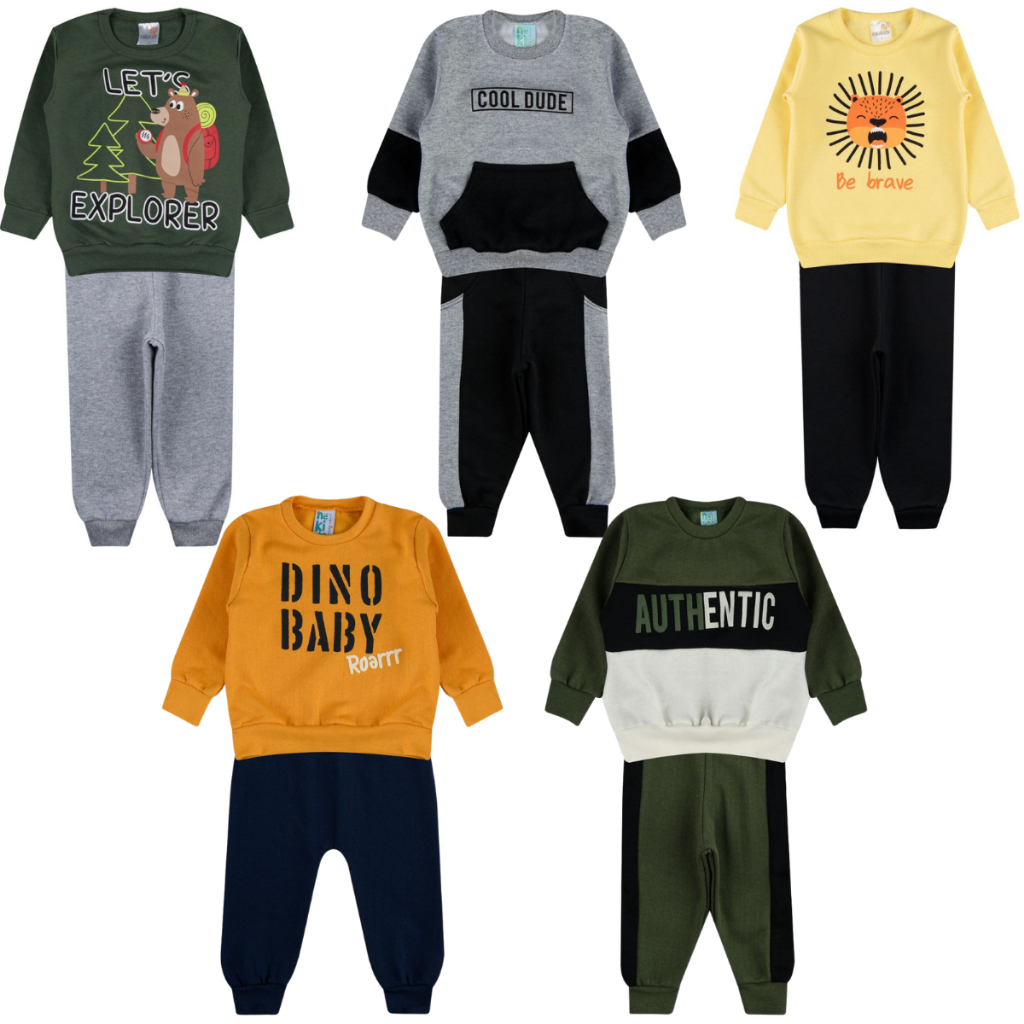 Kit 5 Conjunto Moletom Bebê (P ao G) Inverno Bebê Menino - 5 Conjuntos Moletom