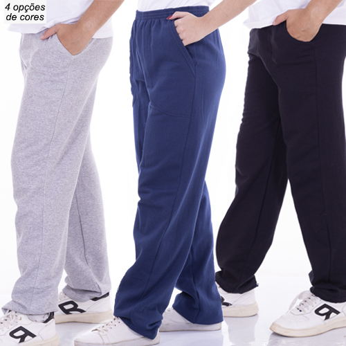 Calça moletom flanelado reta com bolsos