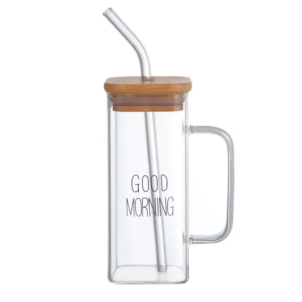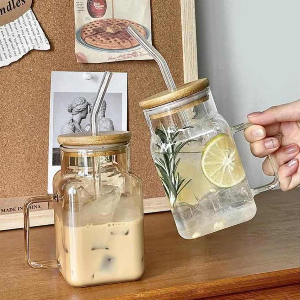 Copo de Vidro com Canudo de Vidro para Drinks Coquetéis Cafés e Chas 470ML