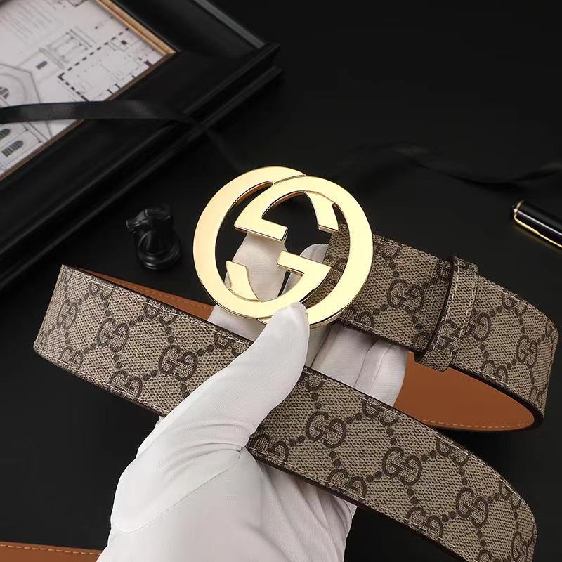 Korean Unisex Belt Leather Double G Smooth Buckle Belt Letter Buckle Belt Fashion Trend Trouser Belt Out Hundreds of Matching Accessories