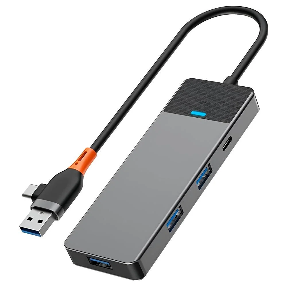 Hub Usb 3.0 + Type-c 3.1 Wiwu Linker A431c 4 Portas / 3 Usb 3.0 / Type-c Fêmea - Cinza