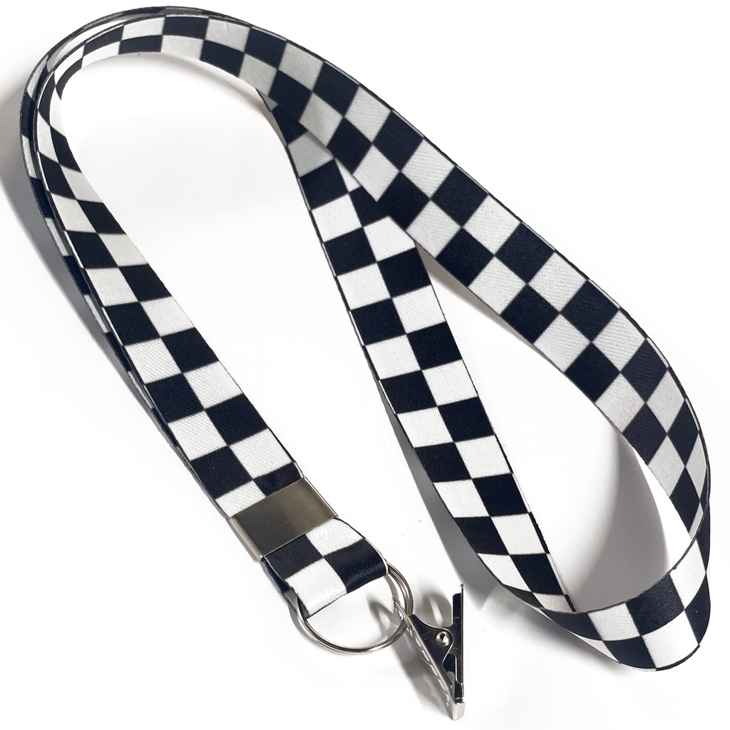 Cordão personalizado Quadriculado Preto e Branco para Crachá com Jacaré e Argola