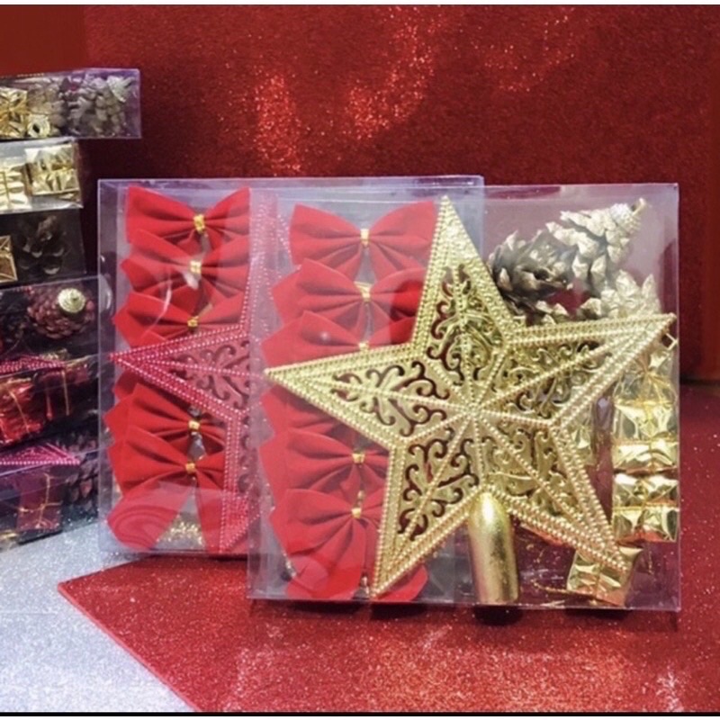 Kit Natalino Com Estrela Laços de Natal Dourado- Enfeite De Natal Decoração