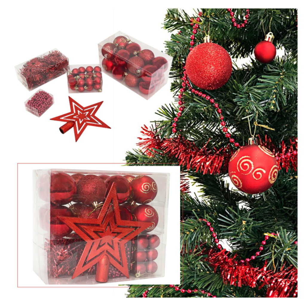 Kit 44 Peças Decoração Enfeite Natalino com Estrela, Bolinhas, Festão e Cordão de Pérolas Vermelho
