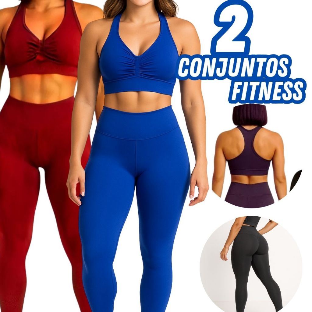 KIT 2 CONJUNTOS FITNESS MODA DE ACADEMIA 2 CONJUNTOS COMPLETOS SUPLEX PREMIUM Feminino de Academia Roupa Para Malha