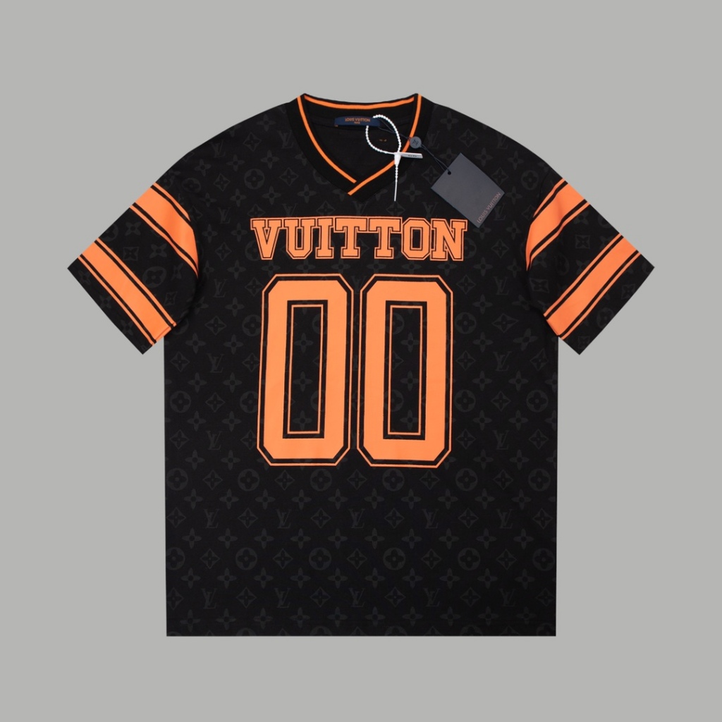 Louis Vuitton 2024 Novo produto Camiseta Estilo Catwalk Moda Tendência Pescoço em V Manga Curta Homens Mulheres Mesmo Estilo