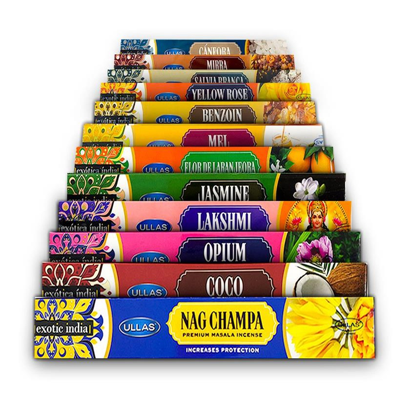kit Incenso Indiano De Massala Ullas 12 cxs 84 VARETAS- Fragrancia Mista + PORTA INCENSO PALITO