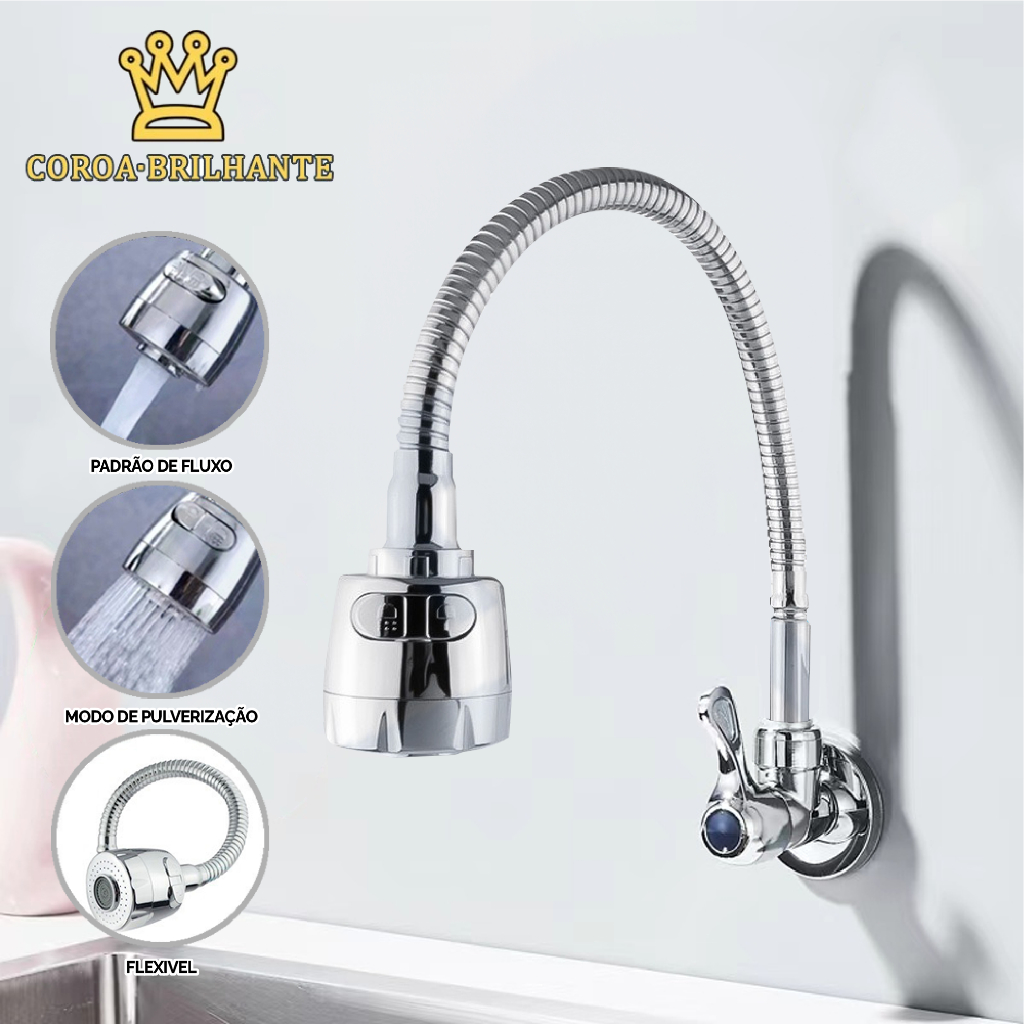 Torneira Cozinha Gourmet de Parede METAL Inox Flexível