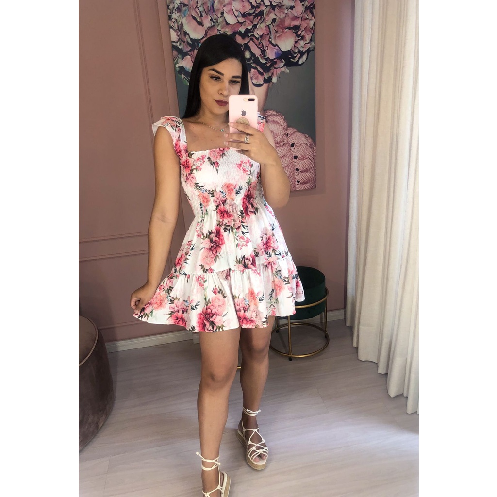 Vestido Feminino curto Rodado Lastex Estampado Floral Vestidos Feminina Moda verão com alça Borboleta