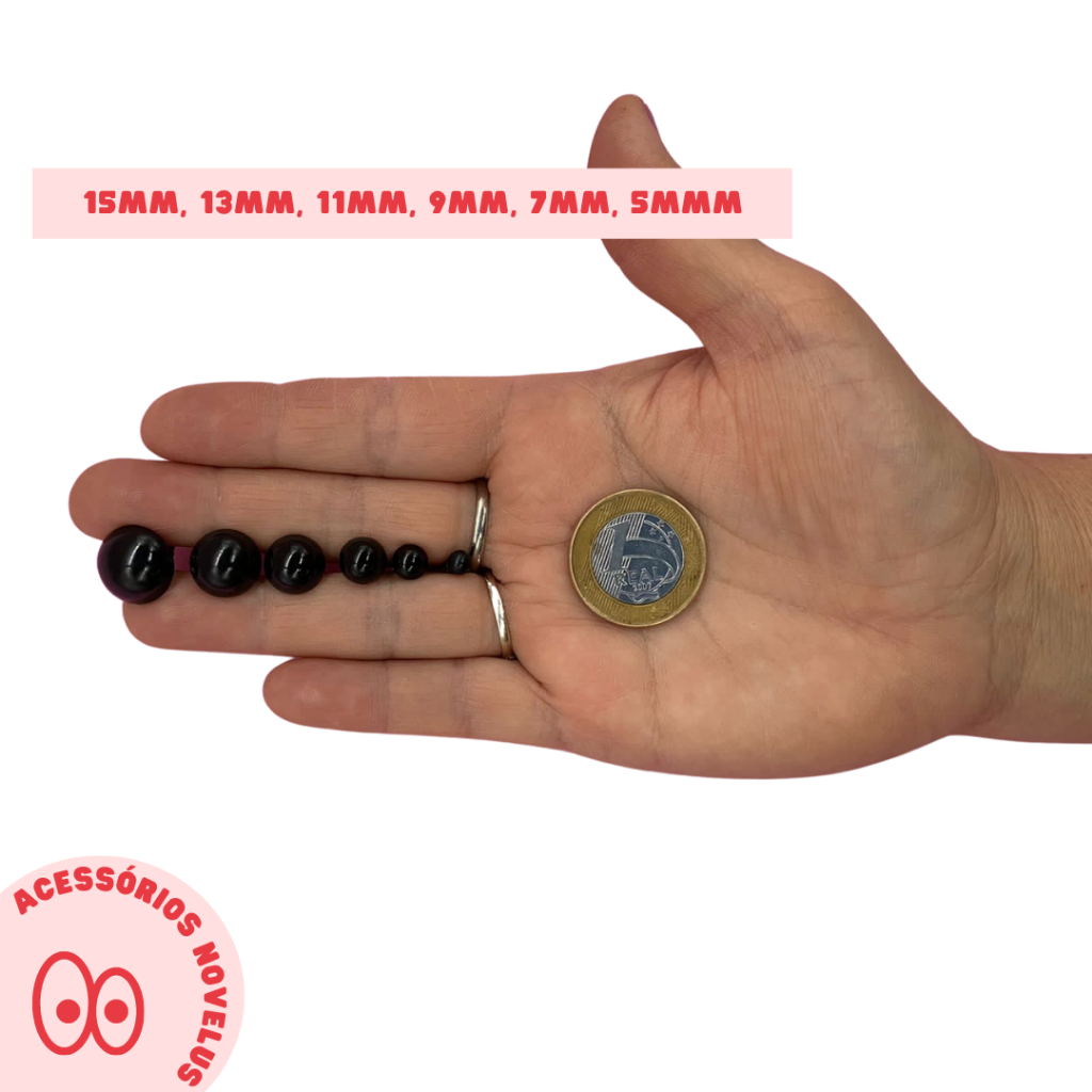 Kit Olho com trava de segurança preto para amigurumi e boneca, olhos tamanho 12, 13, 14, 16, 18 e 20