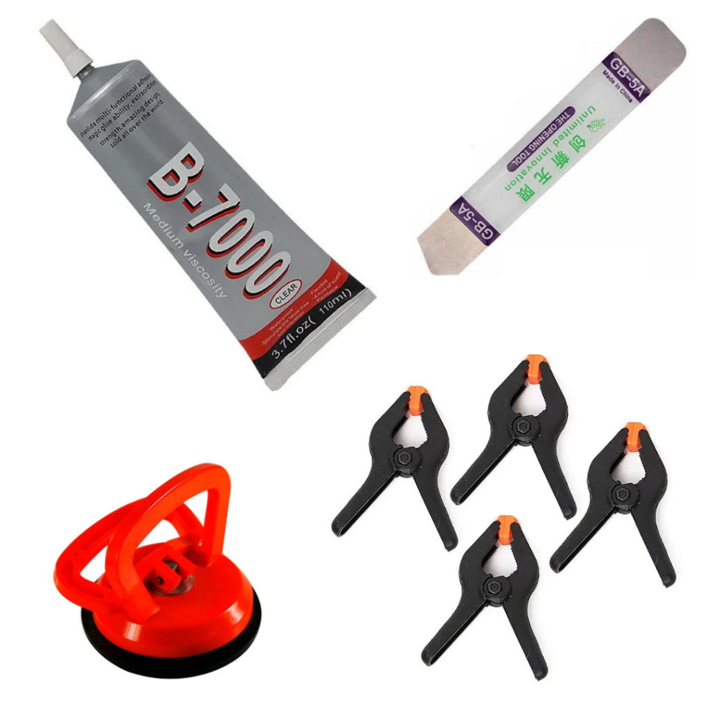 Kit Manutenção celular Cola B7000 110ml + 4 Grampos Fixa Celular + Ventosa + Espátula GB5A