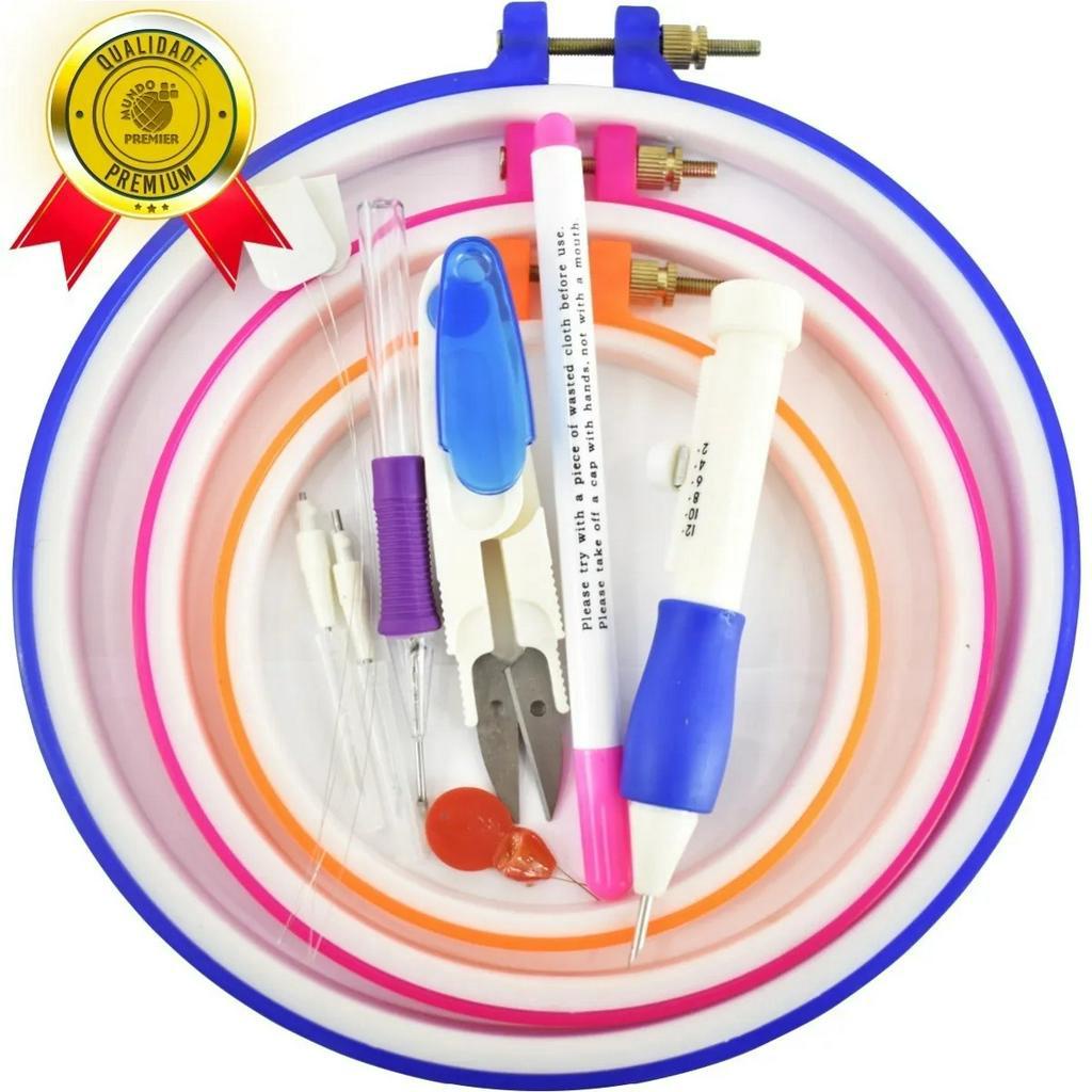 Kit Agulha Magica Bordado Ponto Russo Com Bastidor Manual