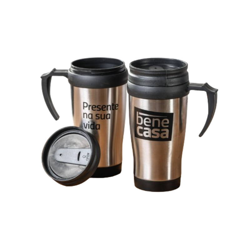 Kit 2 Canecas Térmica com Tampa e Alça Viagem Aço Inox 400ml