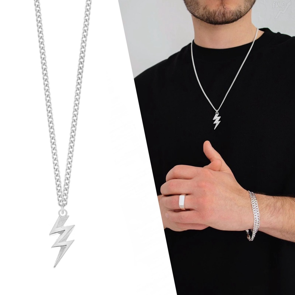 Colar Masculino Raio Corrente Aço Inox Trovão Hype cor Prata Não Enferruja Pronta Entrega Para todo o Brasil Qualidade