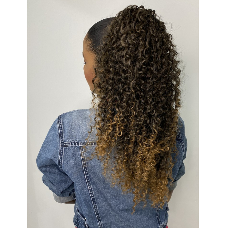 Aplique Cacheado Rabo De Cavalo Bio Fibra - Monique 70cm - Degradê