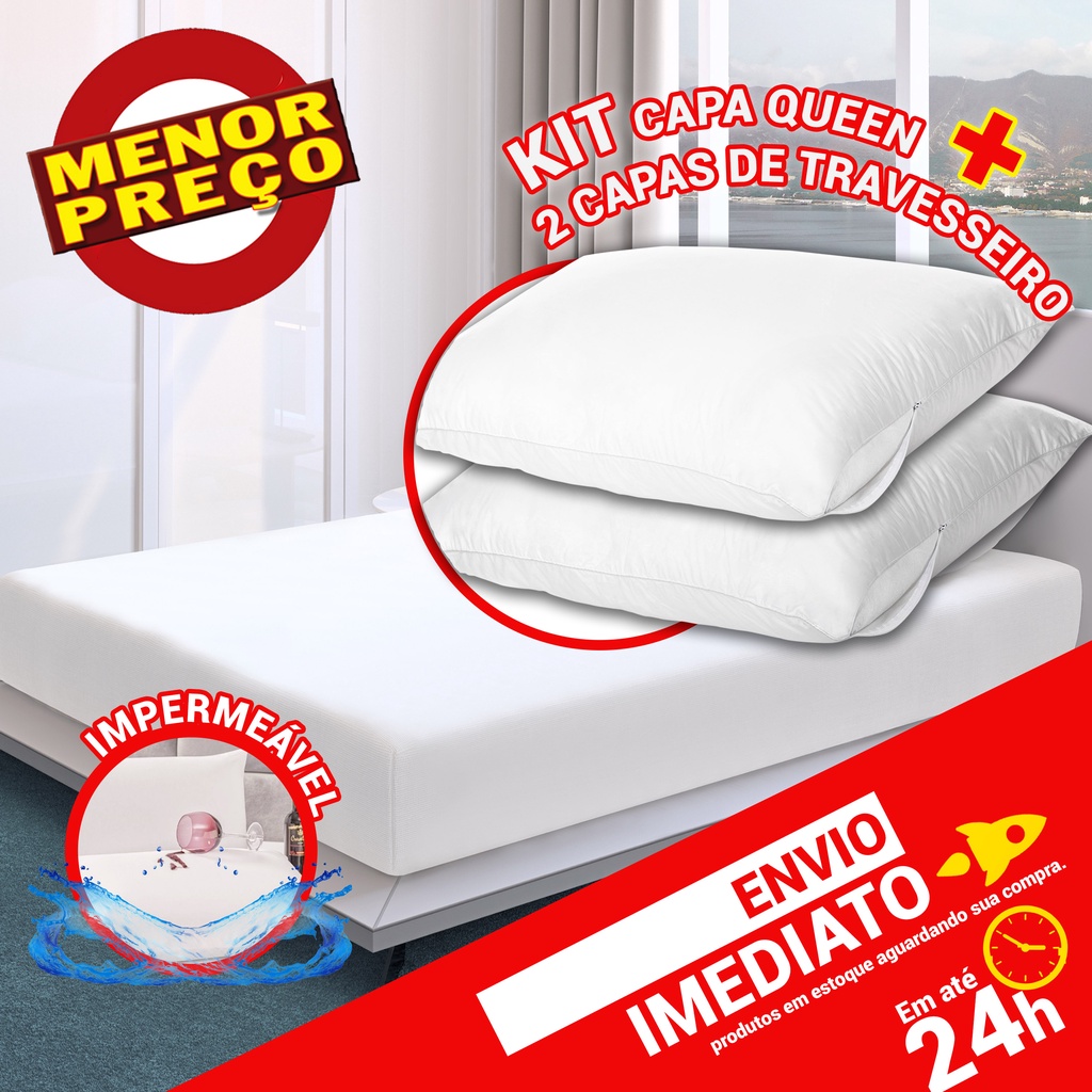 Kit Capa Colchão Queen + 2 Capas Travesseiro Impermeáveis Antiácaro Proteção Total - Pronta Entrega