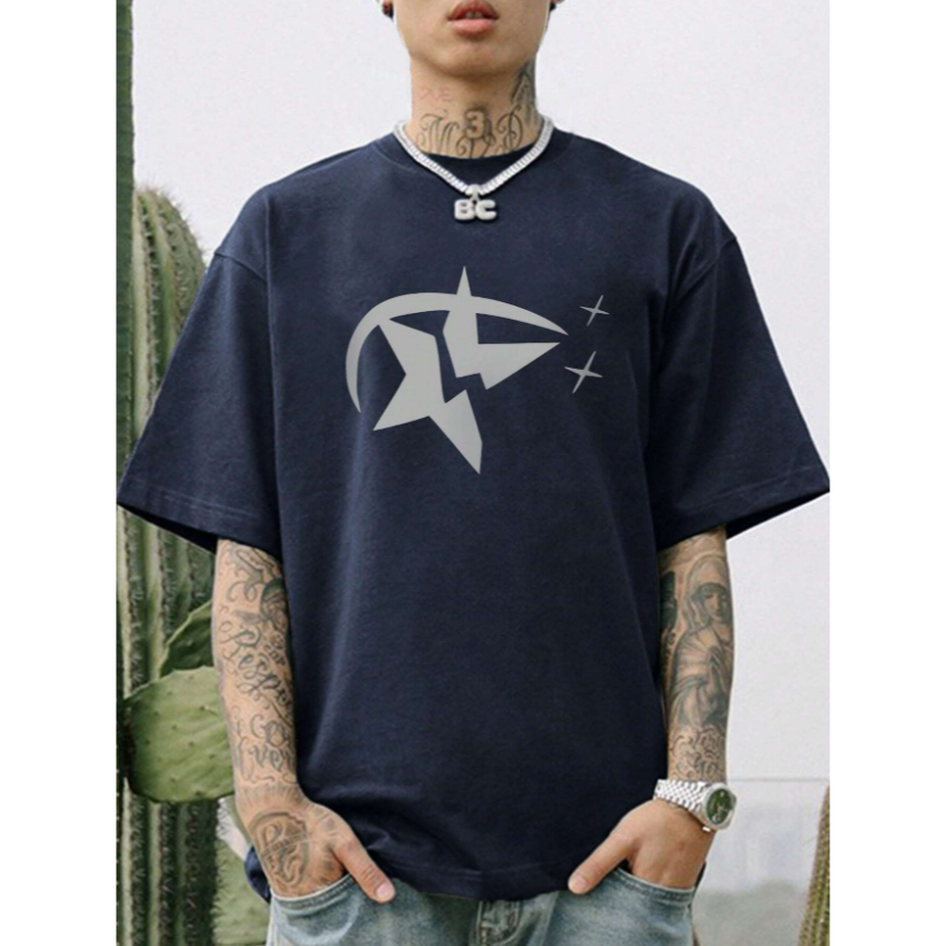 Camiseta Masculina Oversized Streetwear Estampa Broken Star Bordado Estrela Quebrada Skate Old School Blusa Manga Curta
