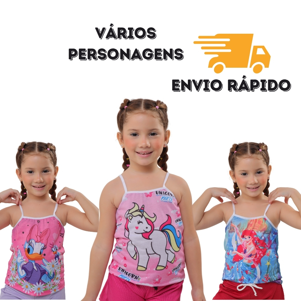 Kit 3 Blusas De Malha Infantil Feminina Malha Para o Dia a Dia Blusa Básica Alca Roupa de Menina