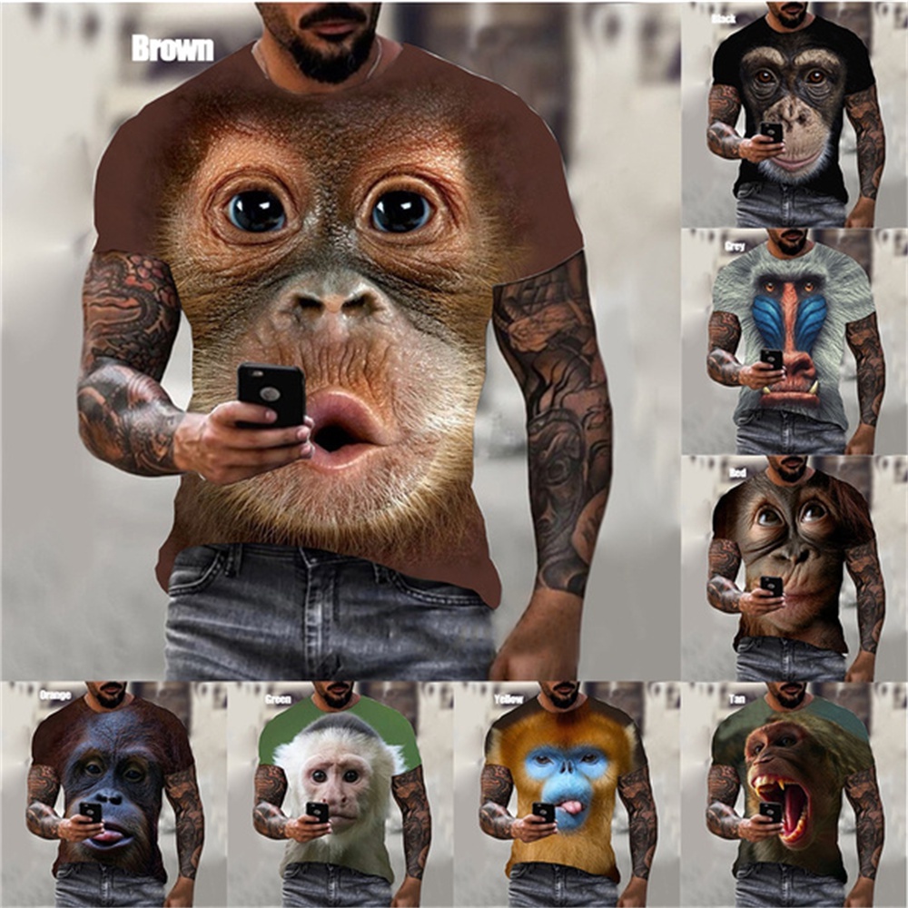 Novo Estilo De Venda Quente De Verão Cara De Macaco Moda Feminina Slim-Fit T-Shirt 3D Impressa De Manga Curta Casual De Pescoço Redondo Vestuário Masculino