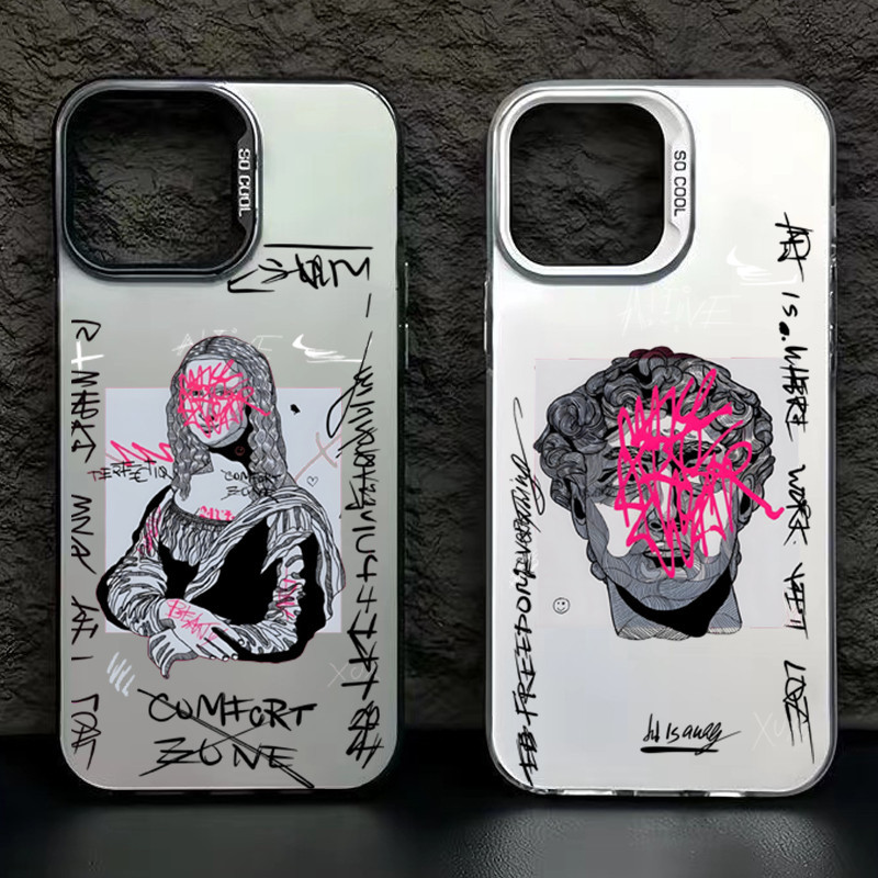 Grafite Grande Arte Estética David Mona Lisa IMD Capa De Celular Para iPhone 15 Pro Max 11 14 12 13 XR XS 7 8 Plus SE 2020 Anti-Impacto