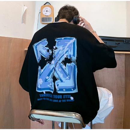 Camiseta Setas Azuis American Streetwear T-shirt Solto Moda Estilo Roupas Versáteis Hip Hop Novo!