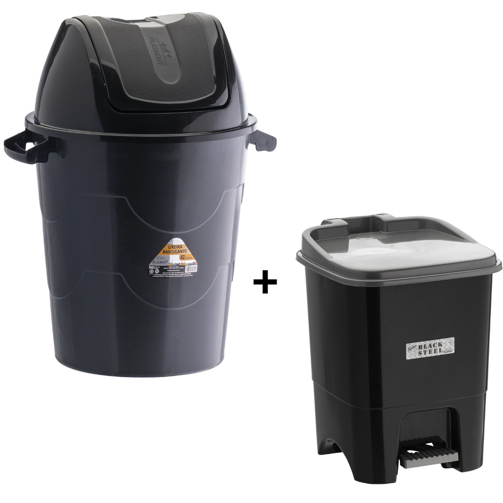 Kit 2 Lixeiras 42 Litros E 15 Litros De Plástico Com Tampa Reforçado Para Casa Cozinha Escritório Lixo