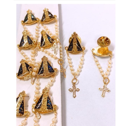 15 Broches com Terço Pérola Nossa Senhora Aparecida