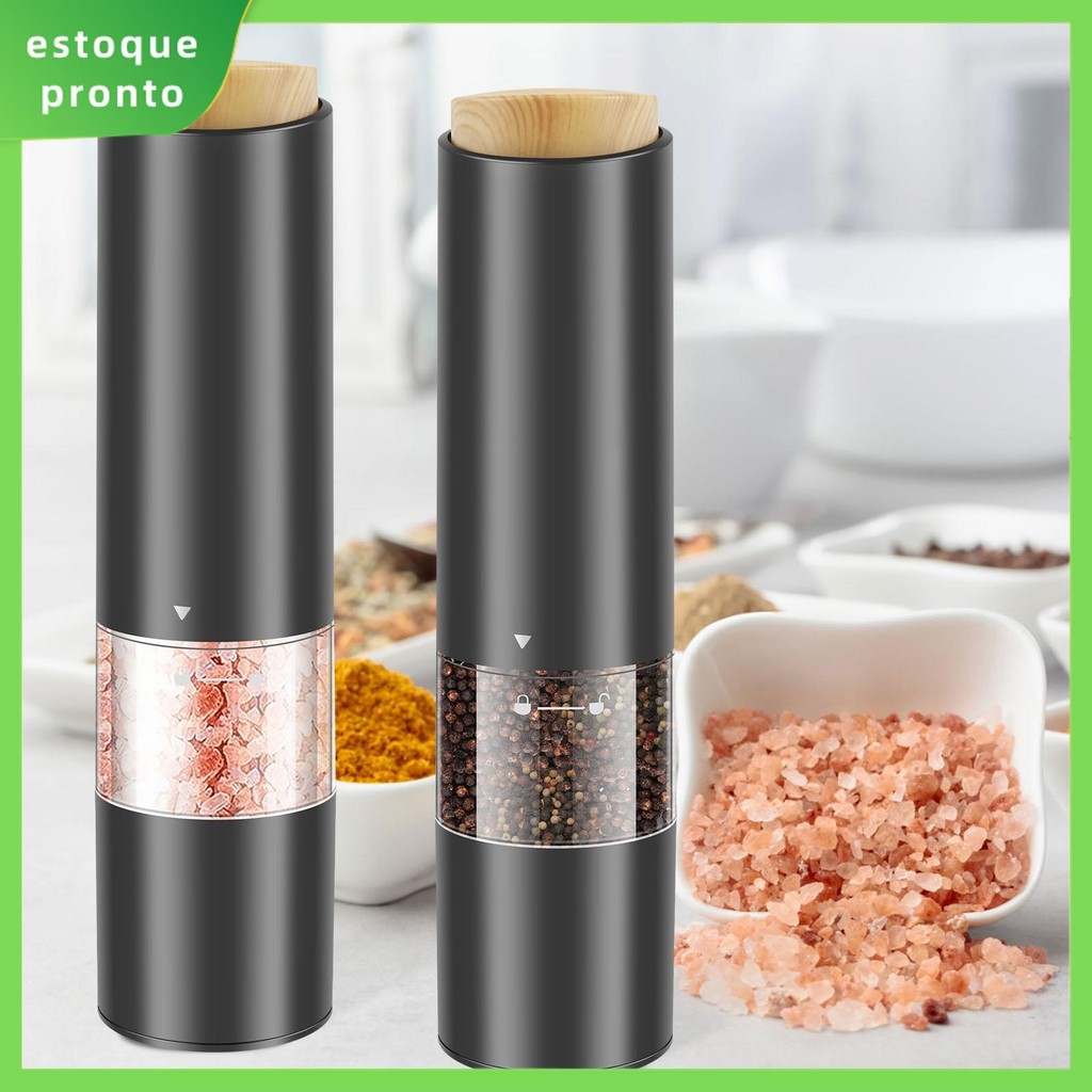 2 Unidades Moedores Elétricos De Sal E Pimenta Moinho De Automático Portátil Moedor Ajustável Com Luz LED 2 Escovas 20.7