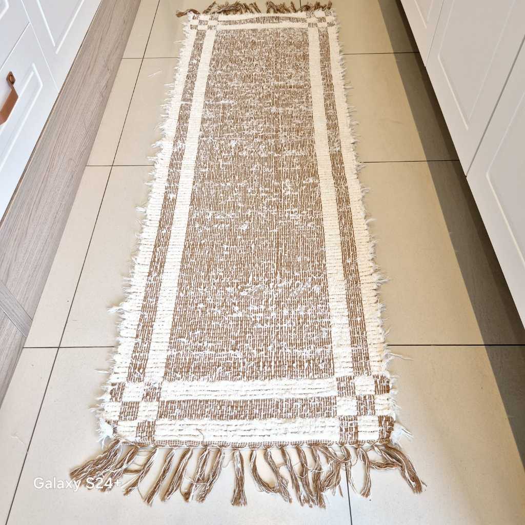 Tapete Passadeira de algodão dupla face 50x150 para Cozinha Corredor Quarto felpudo com franjas lavável em Maquina