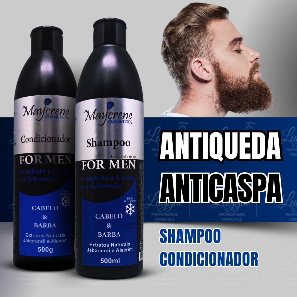 Kit Shampoo + Condicionador For Men Cabelo e Barba - Combate a Caspa - Queda e Seborreia - Maycrene 2x500ml Homens
