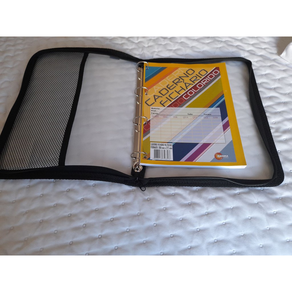 Fichário 4 Argolas Ziper Preto 250x340x35mm c Divisória Plástica C/10 c Bloco 96 Folhas